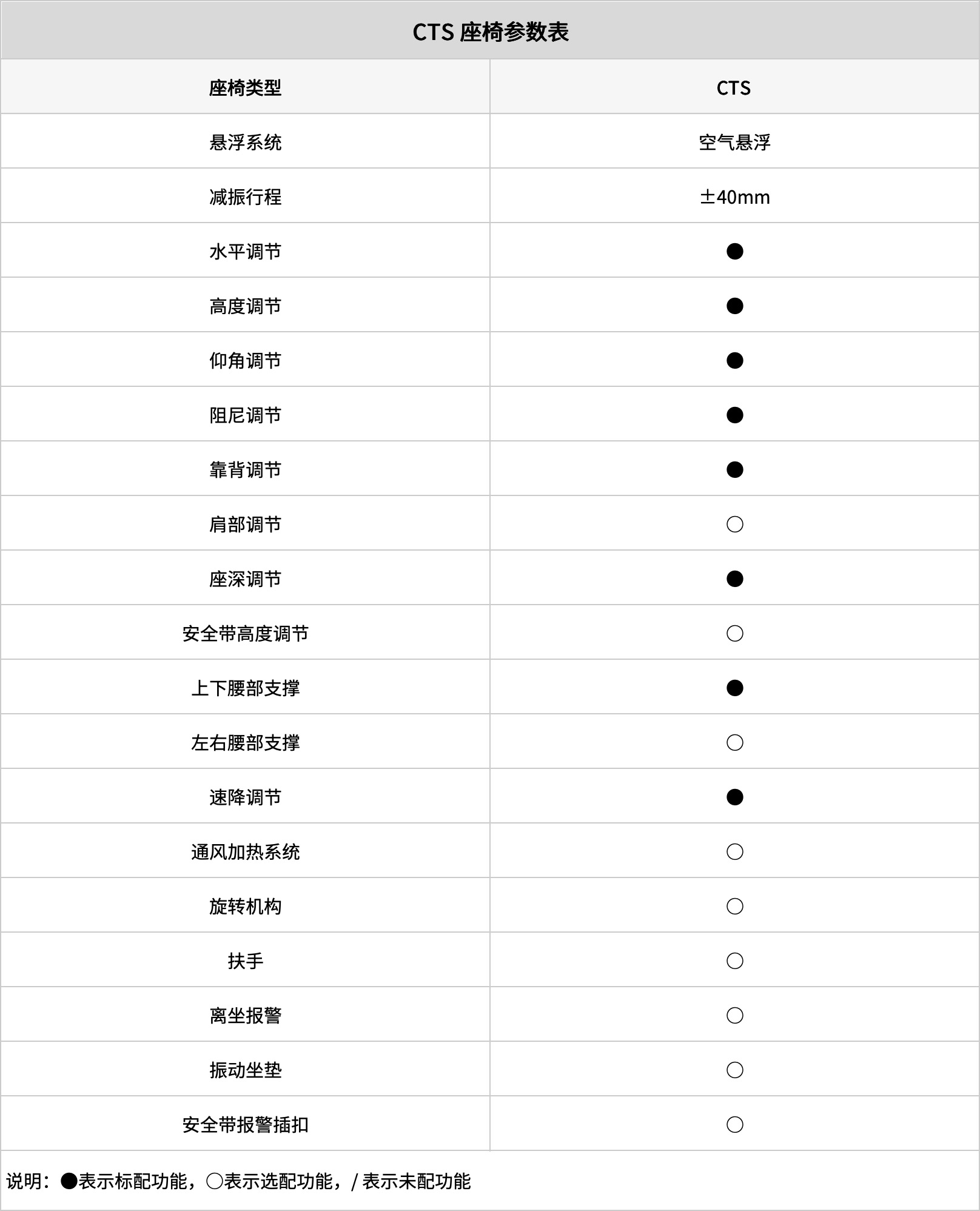 伊思灵CTS是基于NTS平台,采用亚洲人体数据进行舒适性的调试,并对外观与细节上进行再设计,同时具有丰富配置的商用车座椅。